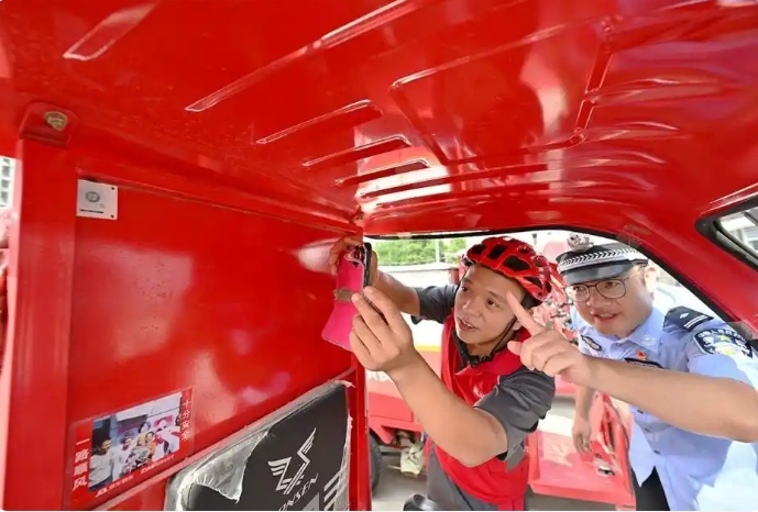 8月20日,通州交通支隊通過線上管理工具“小哥無憂”小程序,精準定位近期交通違法率較高的20余名京東快遞員,在京東快遞三元村站點,開展了一場面對面的交通安全宣傳教育活動。