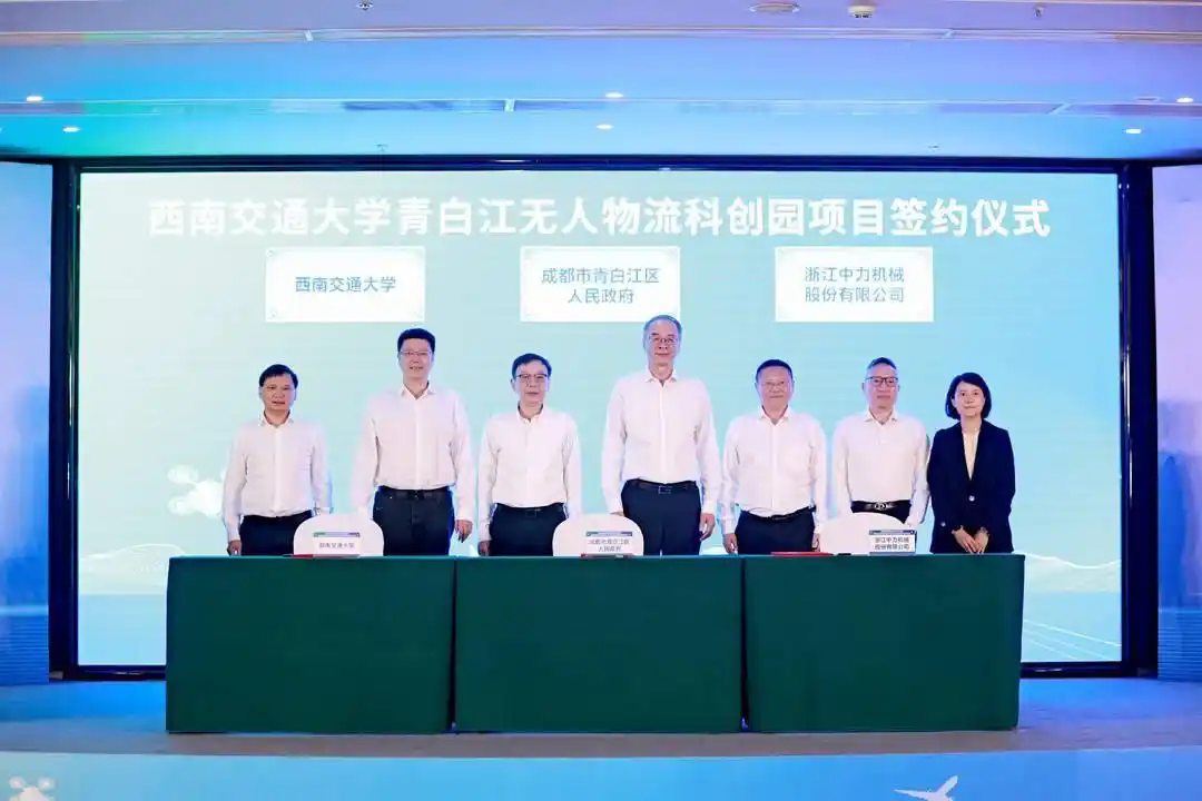 會上,青白江區人民政府、西南交通大學與浙江中力機械股份有限公司共同簽署合作協議,標志著西南交通大學無人物流科創園項目正式落地青白江。